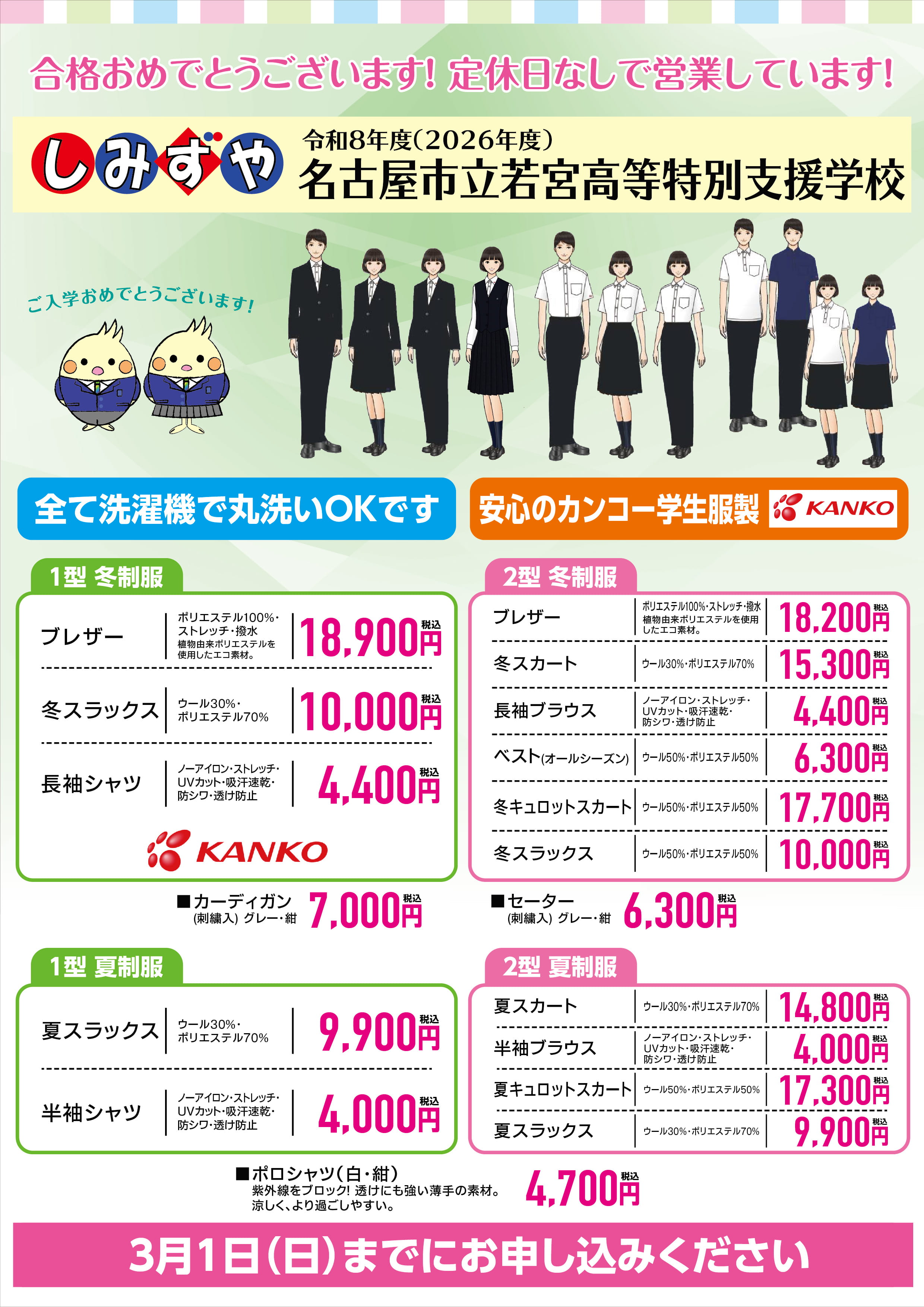 学校用品・制服の事なら名古屋市緑区のしみずや